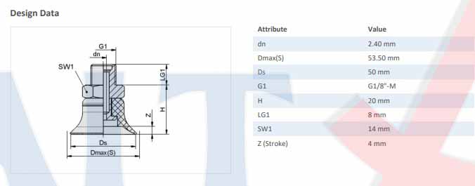 Flat suction pad (round) for smoothor slightly rough surfaces Type: PFYN 50 NBR-55 G1/8-AG Diameter: 50 mm Suction-pad material: Perbunan NBR 55±5ShA Nipple material: Aluminium Vacuum connection: G1/8"-M