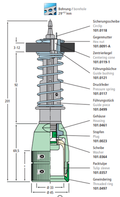 Pick up head, cushion, complete, incl. guide pipe assy, Ø 45 mm, L = 201 mm